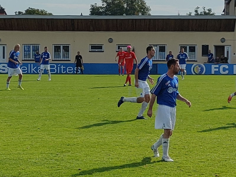 Za krásného, stále ještě letního počasí, předvedli hráči obou týmů divákům v prvním poločasu především urputný boj. Technicky i kombinačně o něco lepší hosté sice drželi míč na svých kopačkách častěji, do vyložených šancí se ale nedostávali a podobné to bylo i na druhé straně hřiště, kde se osamocený Krula marně snažil vyzrát na pozornou obranu soupeře. Jediný náznak šance tak sebral Lanžhotu zdvižený praporek asistenta rozhodčího, na druhé straně pak po centru zleva promáchl v nadějné pozici Sznapka. Po změně stran přece jen šancí trochu přibylo. Tu první měli hned 46. min. hosté, Pelán ale míč skvěle vytlačil na tyč a mimo branku. Před druhou brankou zlobil především agilní Novotný, jehož tvrdou střelu ale hostující brankář Klimeš tygřím skokem vyrazil. A nebylo to naposled. V 78. min. si míč na levé straně hřiště postavil k trestnému kopu Krula a poslední instance Lanžhotu byla v pohotovosti znovu. Výtečný zákrok tak opět bezbrankové skóre 0:0 nezměnil. Branky se naneštěstí dočkala početná skupina fanoušků hostů. Dopomohlo jim k ní v 81. min. nešťastné podklouznutí našeho stopera Loupa, díky kterému se snadno dostal k míči Balážik. Ten svůj samostatný nájezd na brankáře Pelána sice (zřejmě i díky taktickému faulu našeho brankáře) neproměnil, z levé strany dobíhající střídající Hromek ale míč přece jen protlačil do sítě – 0:1. V hektickém závěru pak už našim k vyrovnání chyběly jak psychické, tak fyzické síly, a tak si Lanžhot do tabulky připsal pátou výhru v řadě, opět bez inkasované branky. Branka: 81. Hromek Diváci: 312, ŽK: 3:3, Rozhodčí: Hudec Sestavy: Velká Bíteš: Pelán – Dufek (71. Loup Pat.), Šperka, Loup Pav., Škuta – Moučka, Merdita, Daněk, Sznapka (83. Macek), Novotný – Krula Lanžhot: Klimeš – Milota, Lenhard, Mihál, Sabler, Pidrusnyi, Včelka (51. Hromek), Totka, Královič (88. Morávek), Balážik, Mikúšek