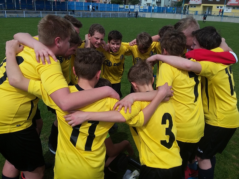 Zápas se nám příliš nepovedl. Míče klukům od prvních minut uskakovaly, přihrávky chodily kam neměly. Soupeř využil svoji jedinou šanci a dlouho držel naději na dobrý výsledek. Poločasová rozmluva asi pomohla, kluci po změně strany zapnuli na vyšší obrátky a postupem času se jejich tlak stal drtivým. Nakonec jsme nejprve po rohu díky Markovi Prudíkovi vyrovnali (výborný centr Lukáše Slámy) a pak strhl vítězství na naši stranu dvěma brankami obětavě hrající Tomáš Jašek.